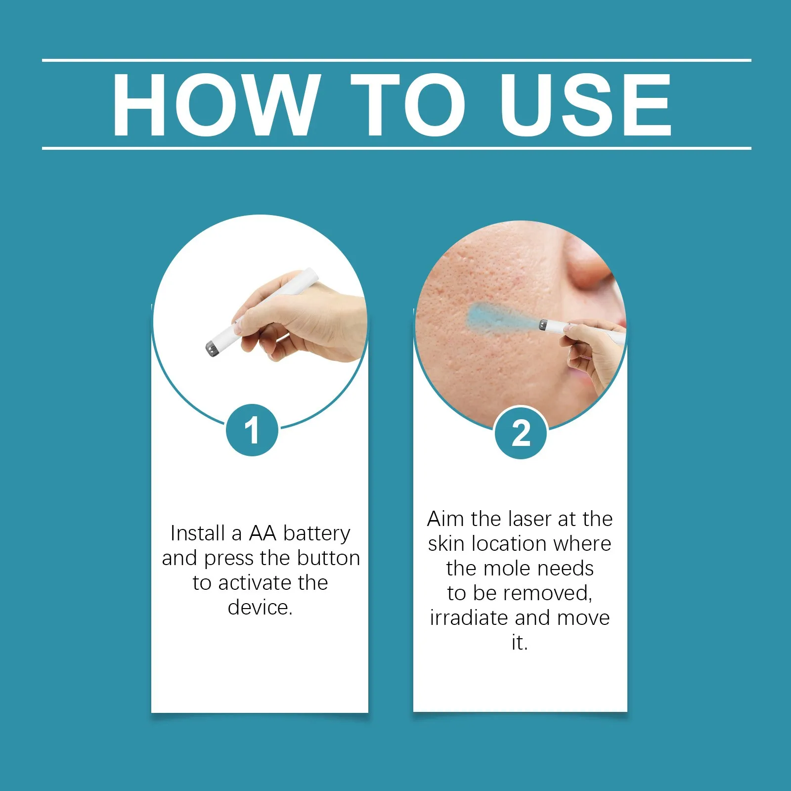 The laser is aimed at the location of the skin where the mole needs to be, irradiates and moves it.