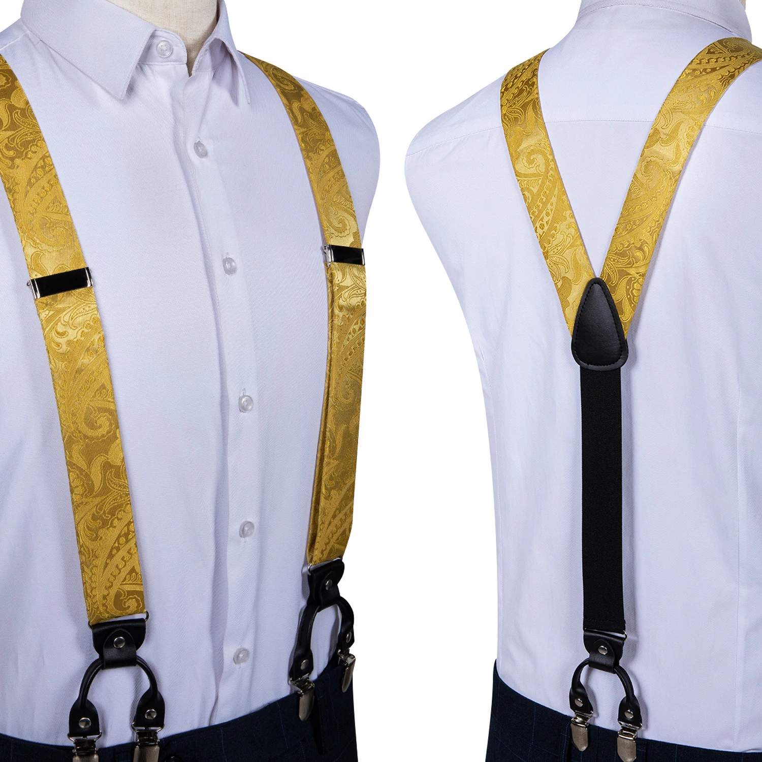 - Attach the adjustable suspenders securely to your trousers