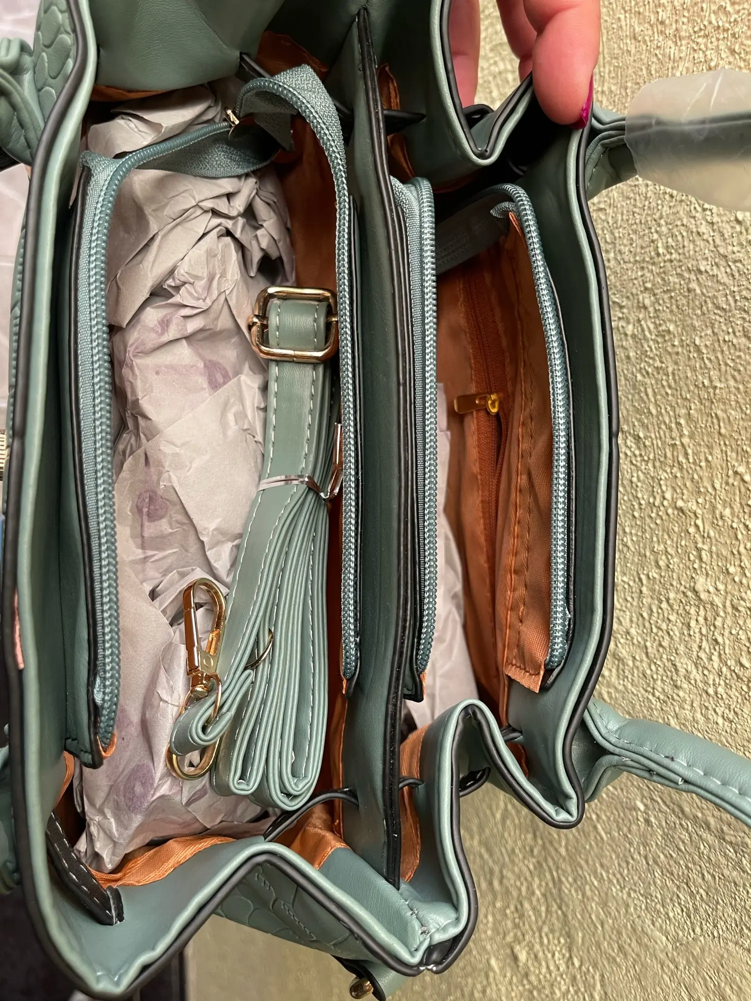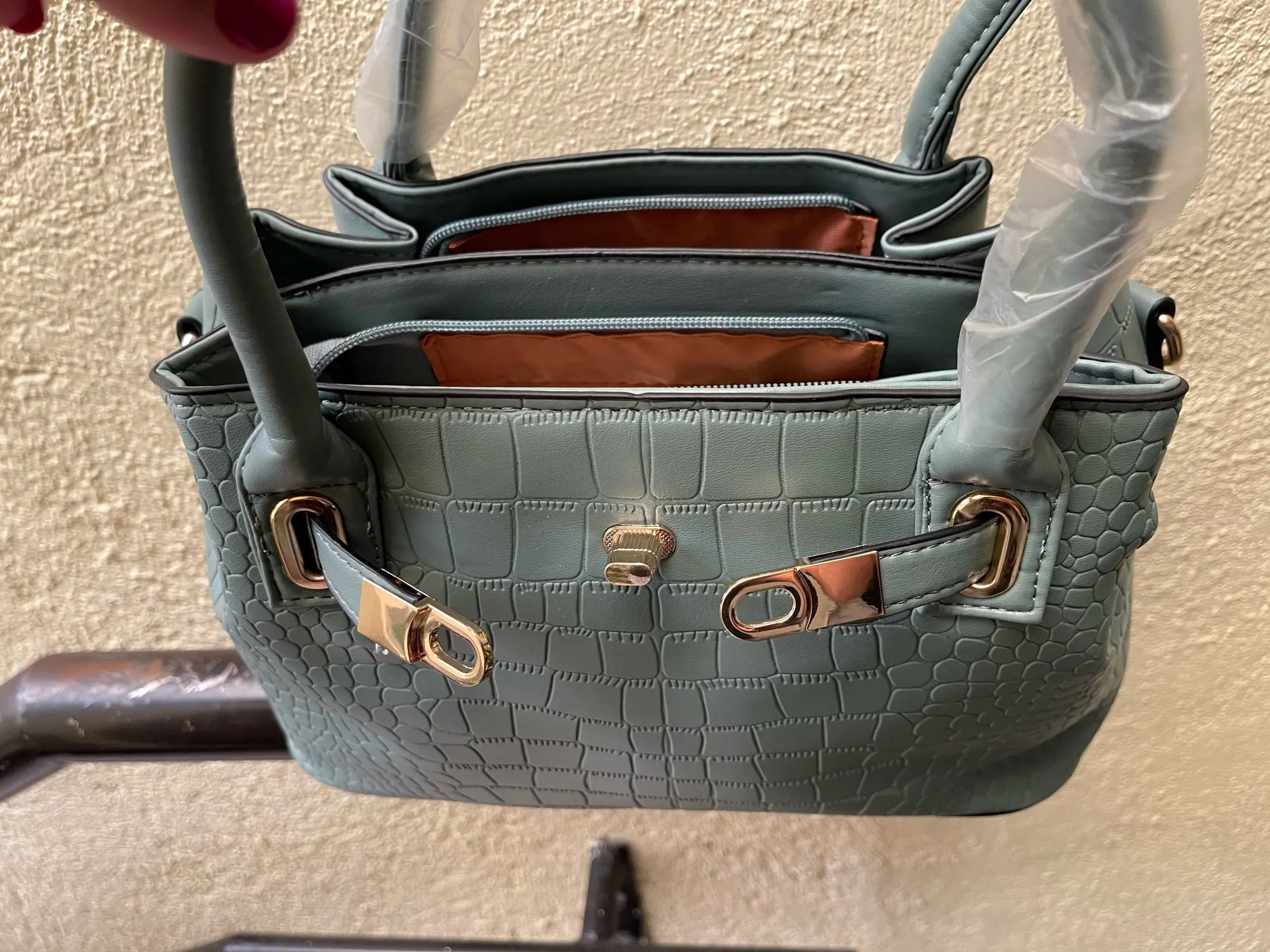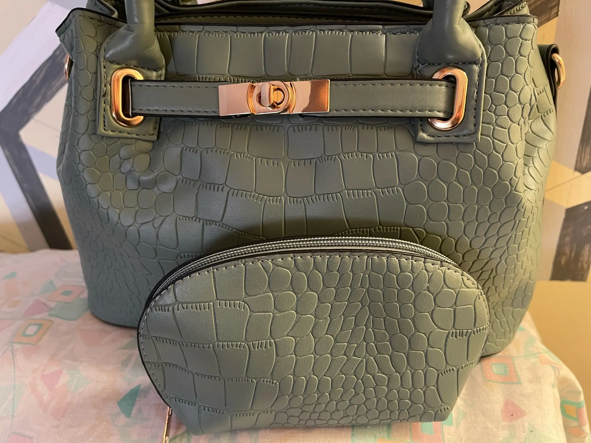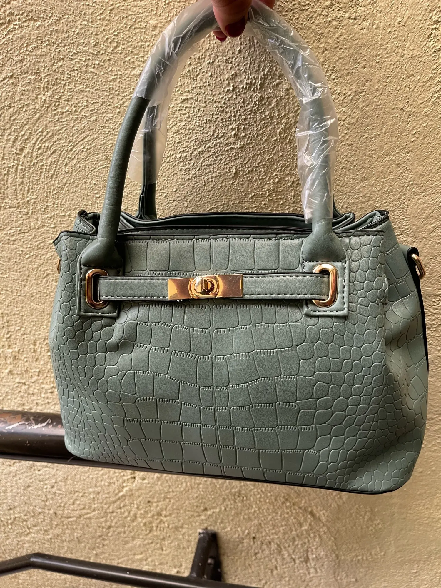 The material is good, it's strong and stable... it comes with its wallet and long handle. The color is exactly like the one shown in the seller's photo. The delivery was also fast and arrived in excellent condition... size 31*21 + handles 12 cm wide.