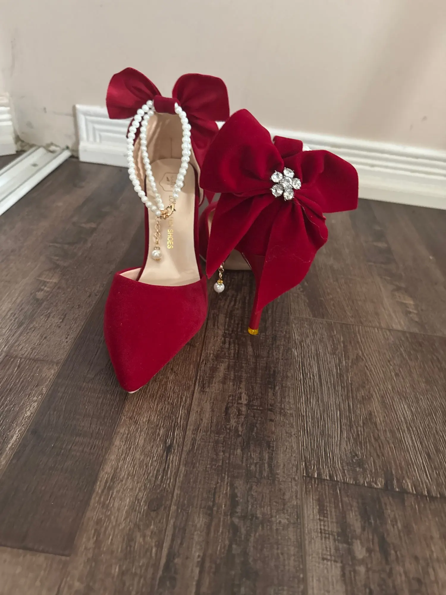 If you’re searching for luxury women’s high heels with pearls, bridal pointed toe pumps, or elegant thin heel wedding shoes, this pair is a must-have addition to your wardrobe.