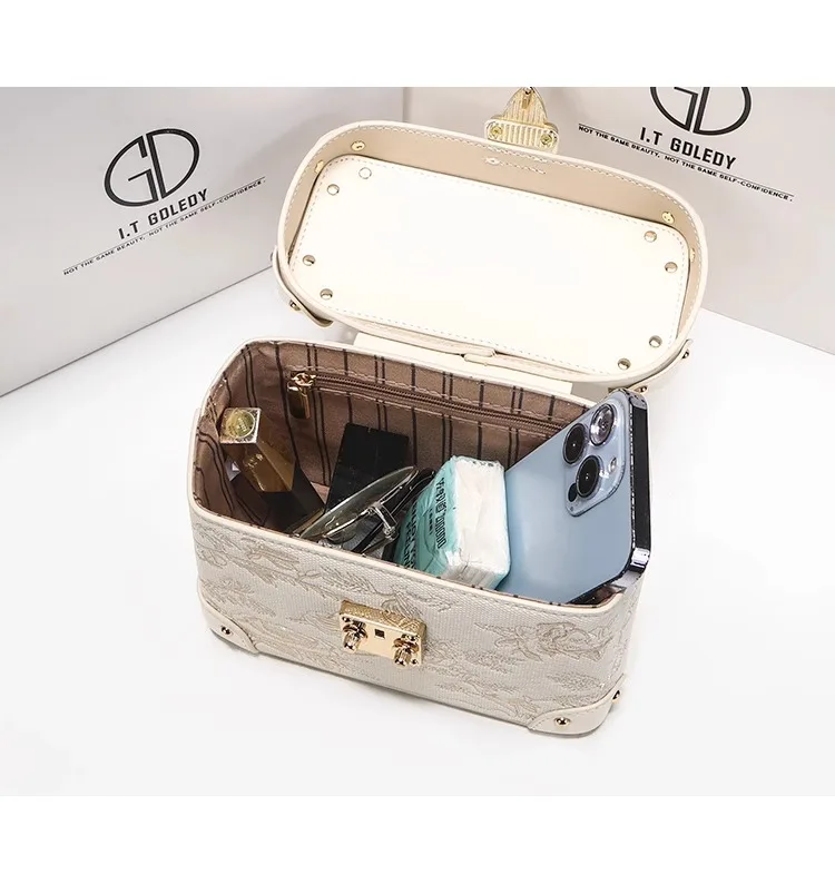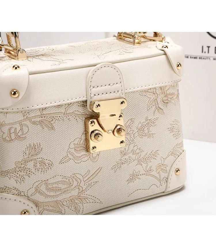 This elegant handbag features exquisite floral embossing, combining refined style with versatile function. Designed for women who appreciate sophistication, it complements evening attire while serving as a practical crossbody for everyday use. Crafted to provide both aesthetic appeal and convenience, this handbag is a seamless accessory for various occasions.