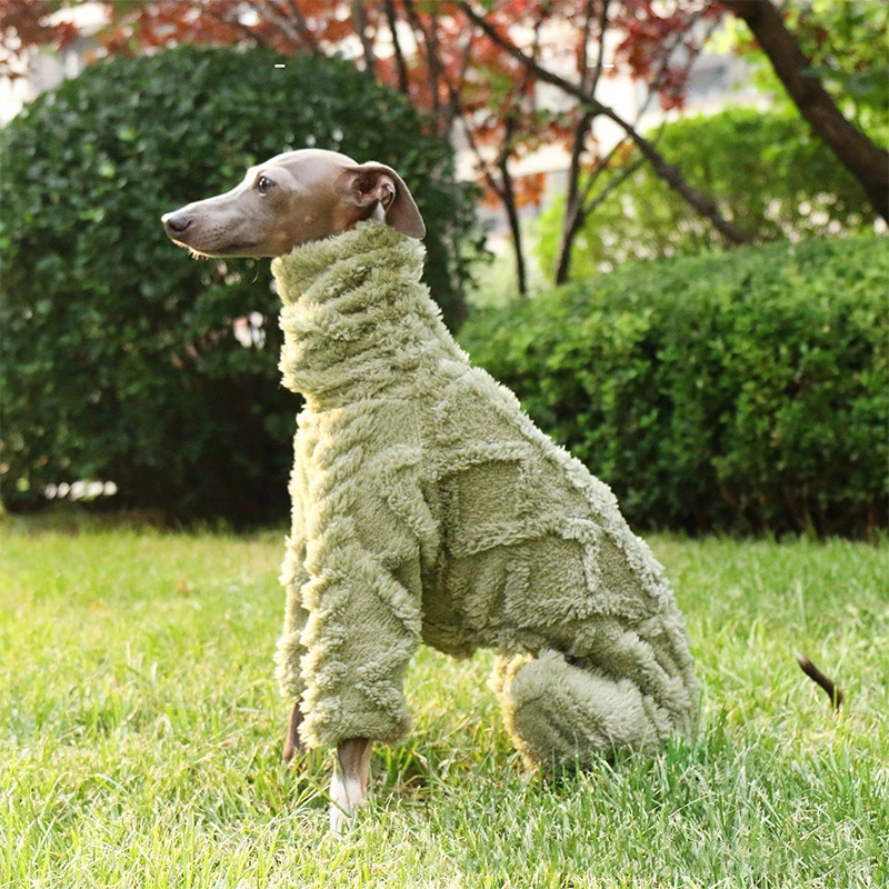 Crafted from soft, insulating plush fleece, the jacket traps body heat while remaining lightweight and breathable—perfect for daily walks, lounging indoors, or chilly mornings and evenings. The turtleneck design adds extra warmth around the neck and chest, areas that sighthounds are especially sensitive to, while also elevating the look with a cozy, fashionable finish. Unlike stiff outerwear, this fleece coat stretches gently to allow natural movement, sprinting, and curling up comfortably.