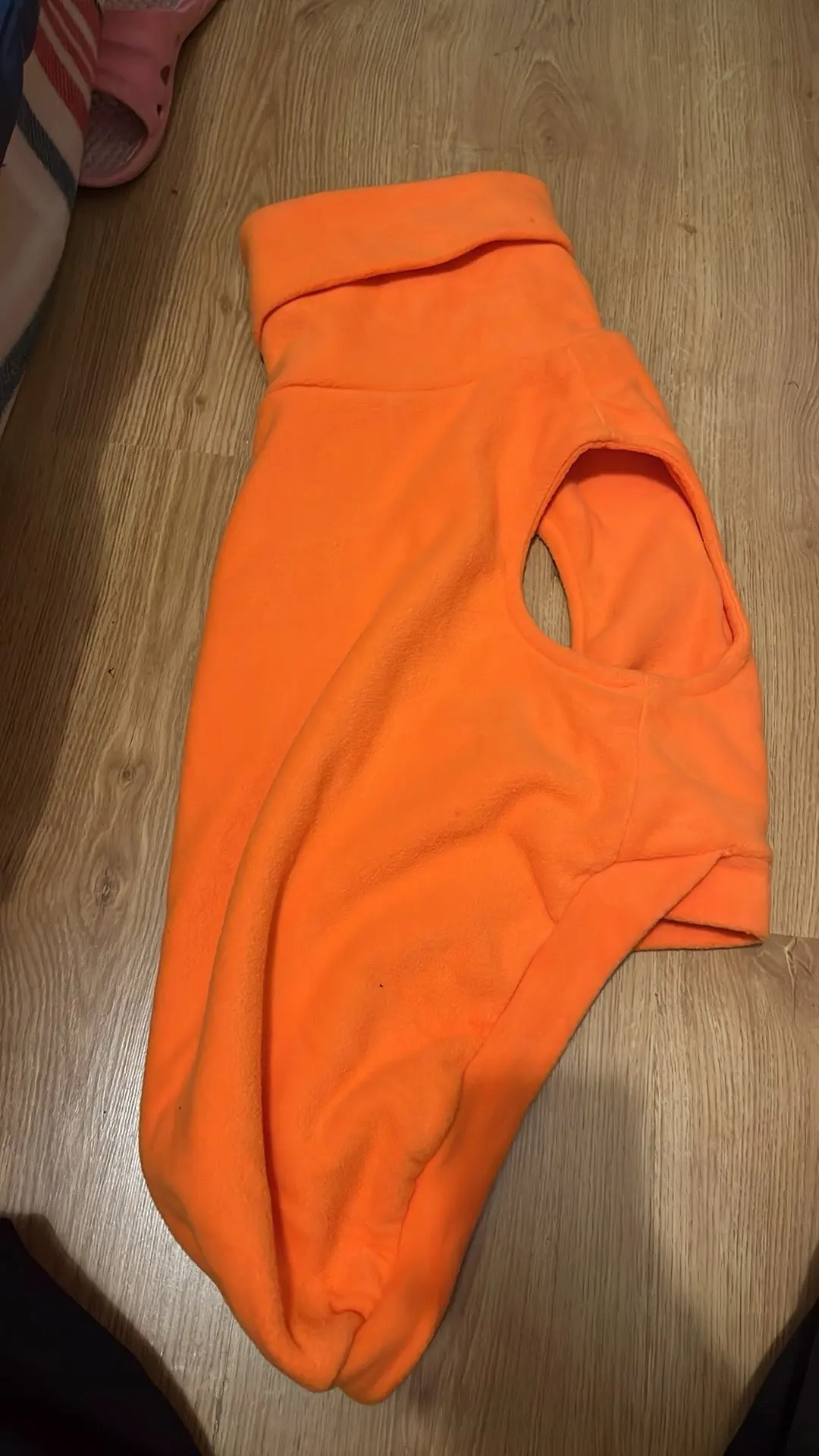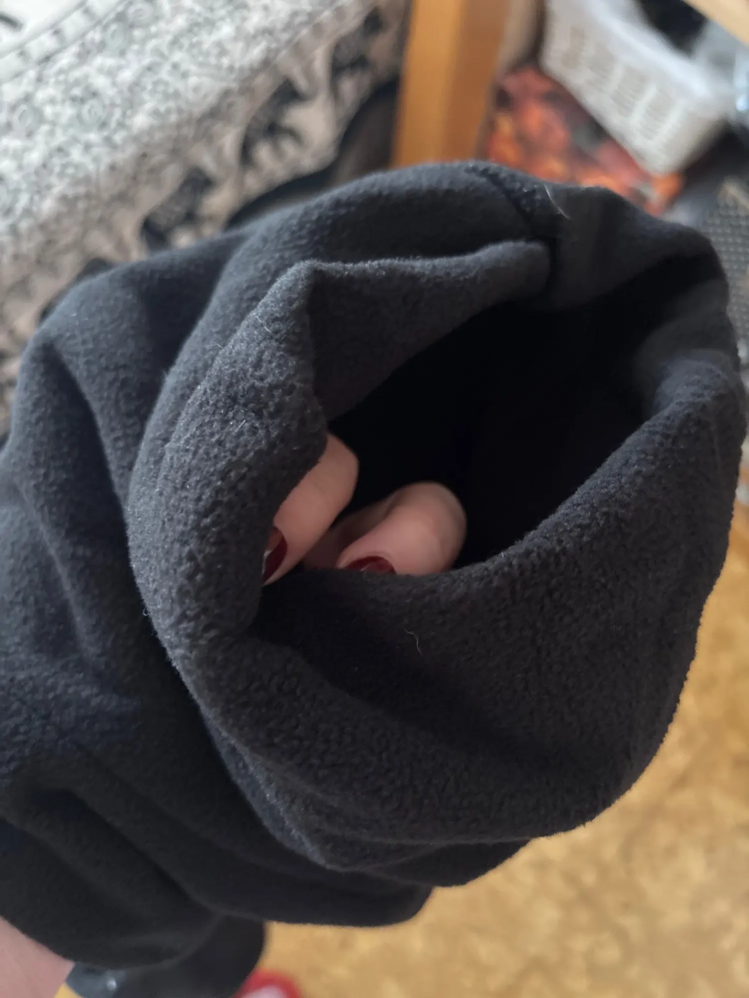 Just as seen in the photo. Made of thick fleece fabric, well finished and true to size. This time I took the black color but I already have another one in red that is working very well. Now we just need to wait for the cold weather to arrive.