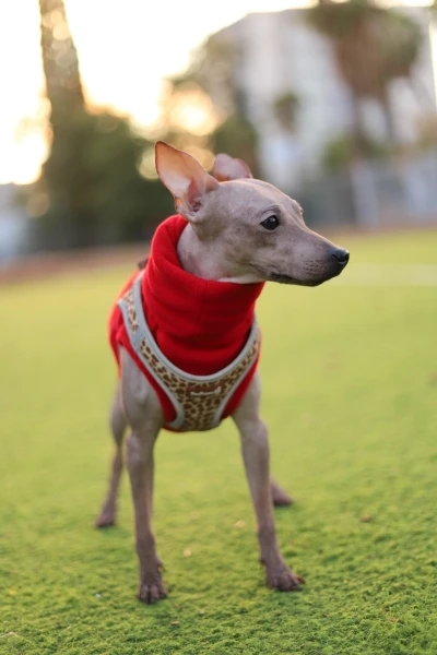 The pullover style makes dressing fast and stress-free, and the smooth interior minimizes rubbing on delicate skin. Lightweight yet insulating, this vest is perfect for dogs who dislike heavy coats but still need warmth. Designed specifically for Whippets, Italian Greyhounds, and similar slim-bodied breeds, it’s a cold-weather essential that balances comfort, function, and fashion.